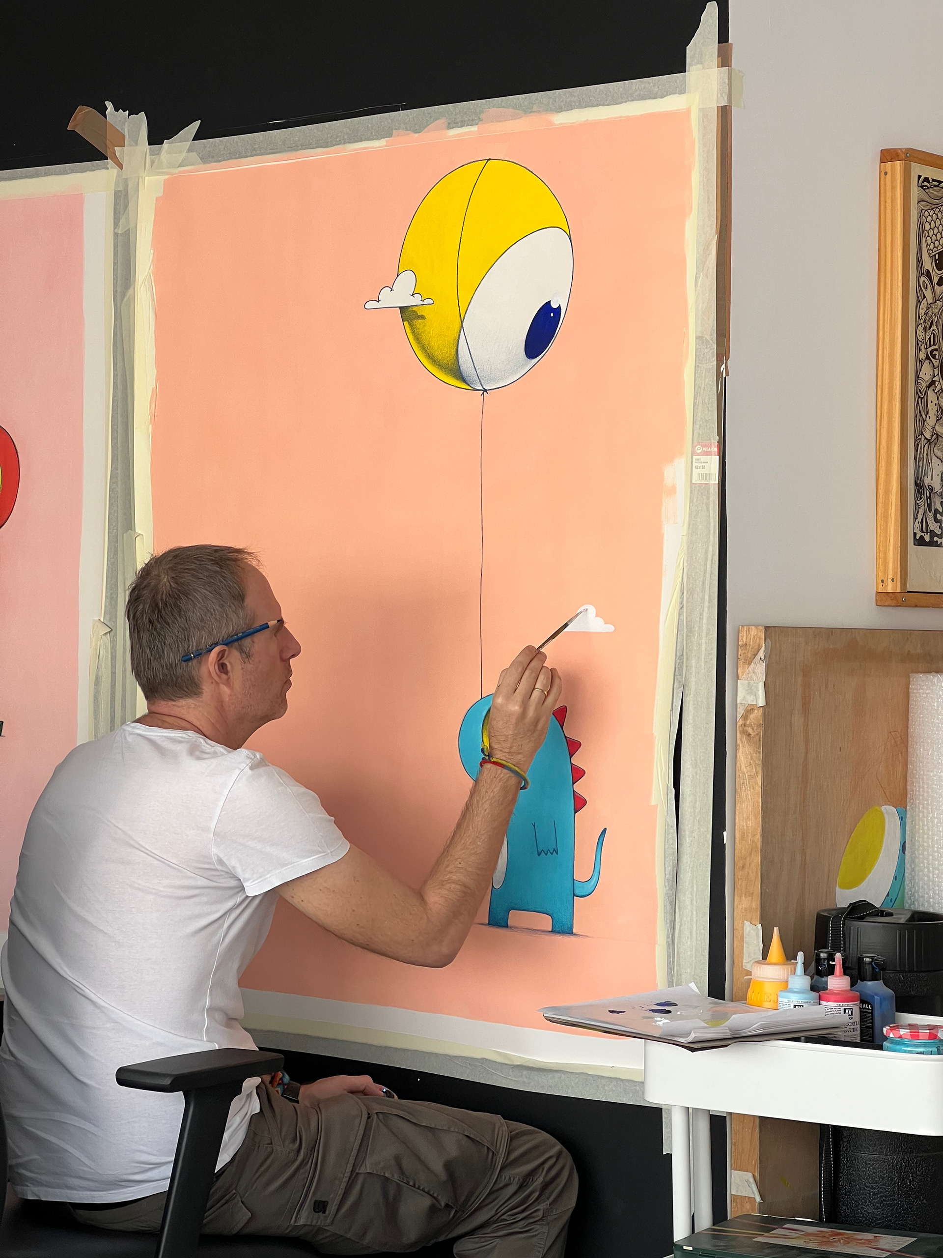 Technique: Acrylic and colored pencils on paper.