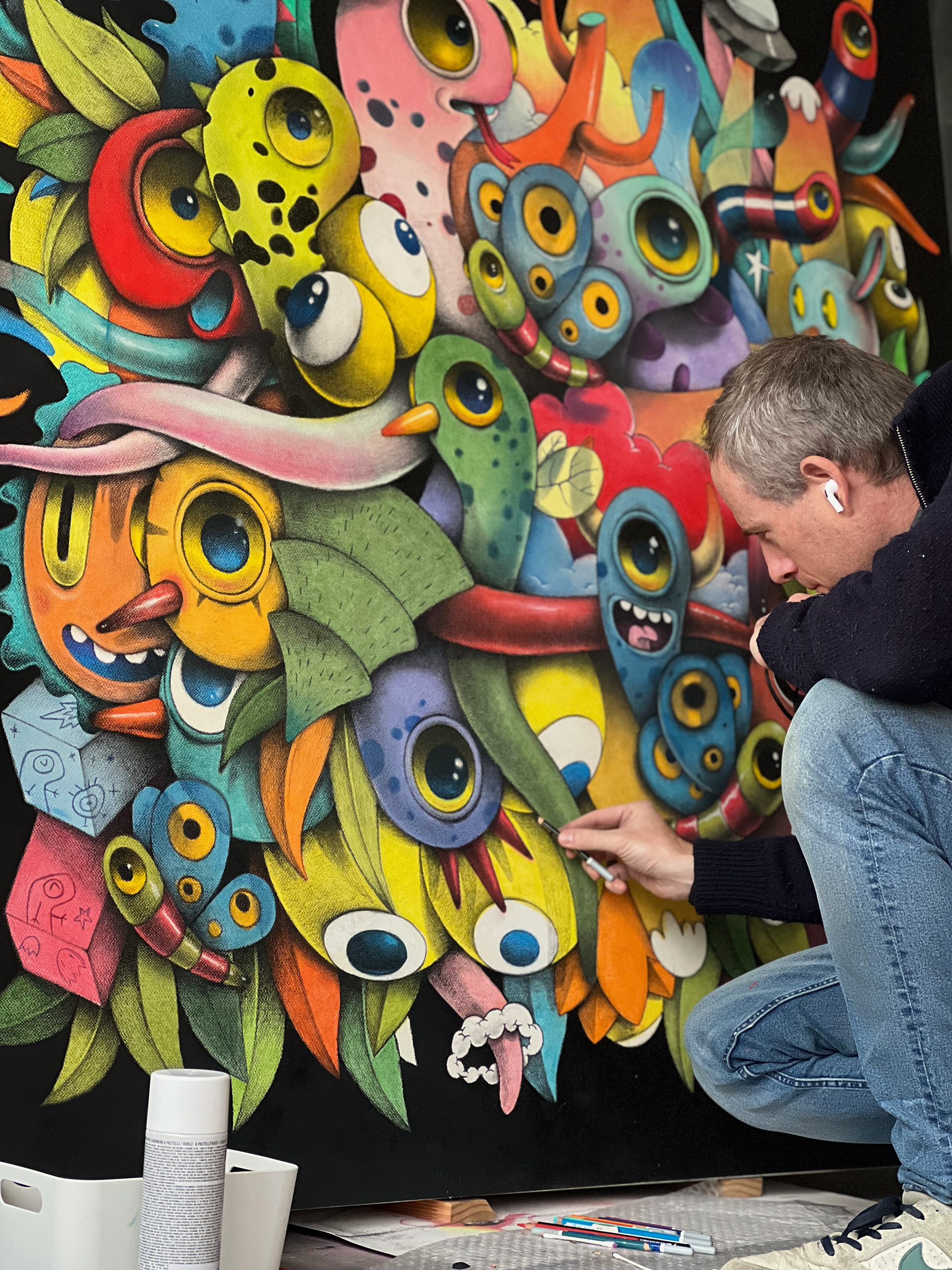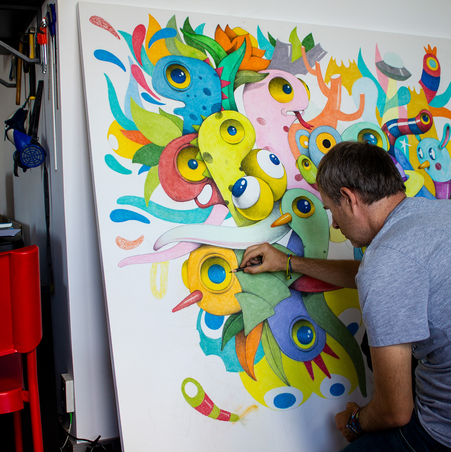 Technique: Pastel and acrylic on cotton paper on wood.