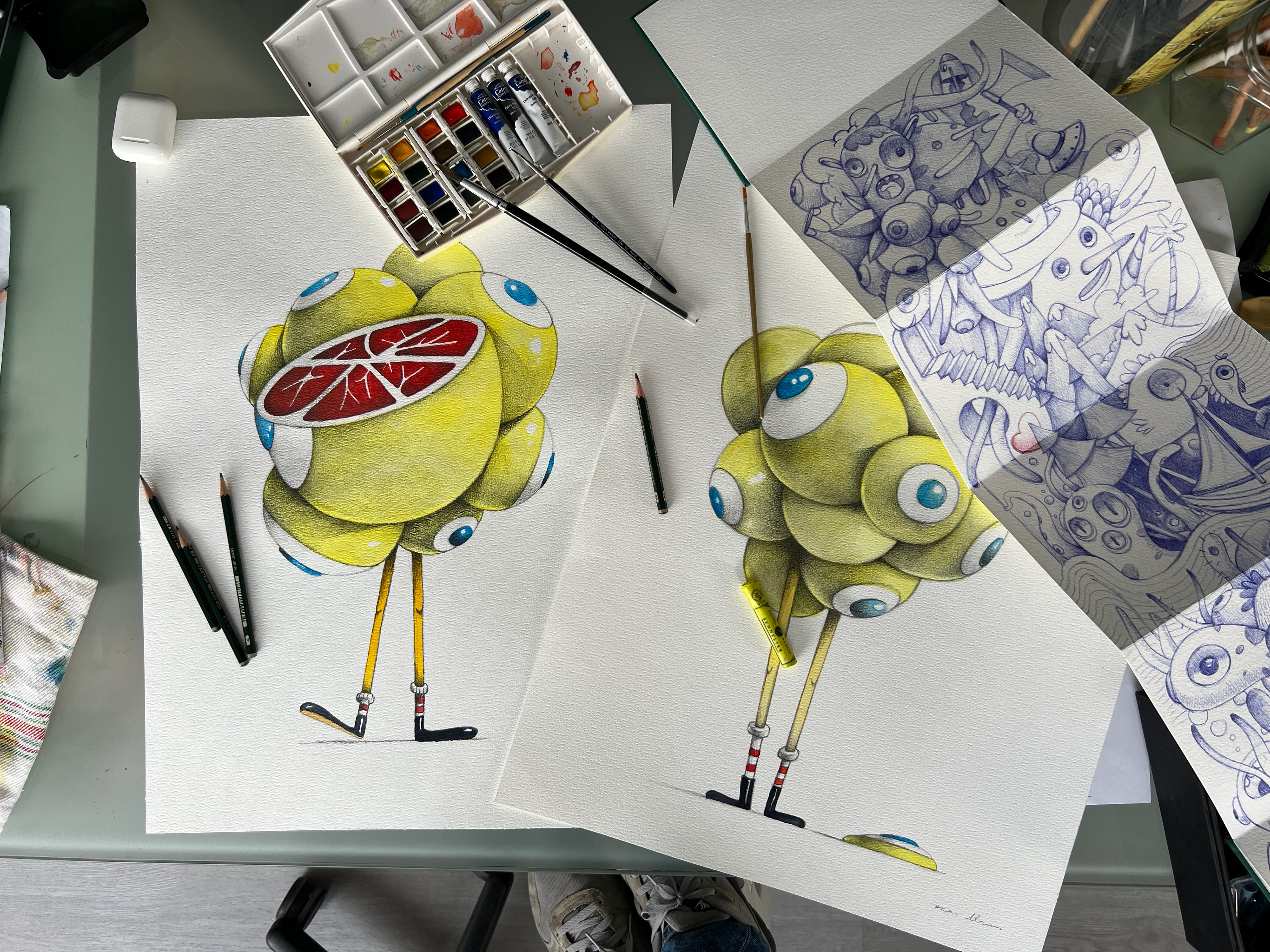 For this series, I worked with the “Look” drawings, the character that best represents my body of work. With its neosurrealist pop aesthetic and strong lowbrow influence, “Look” perfectly embodies the visual universe I have been developing: strange, playful, and slightly unsettling.