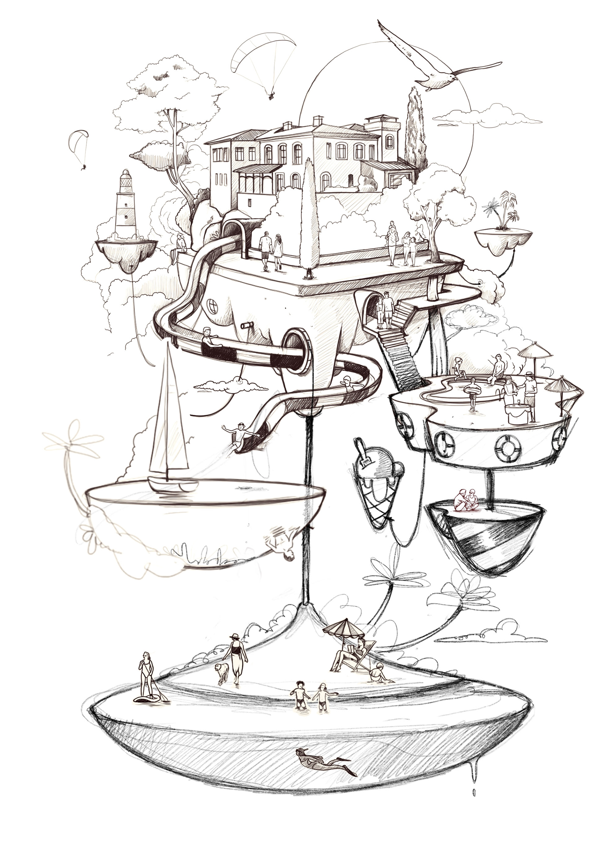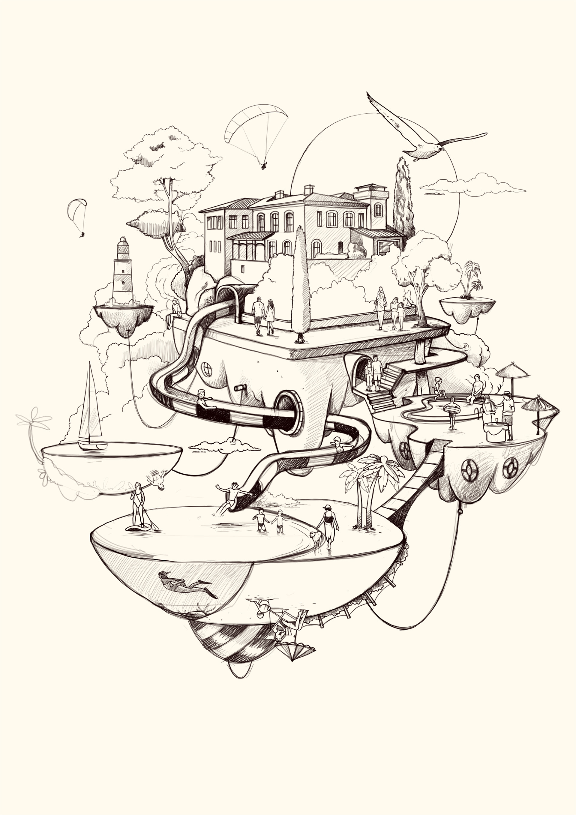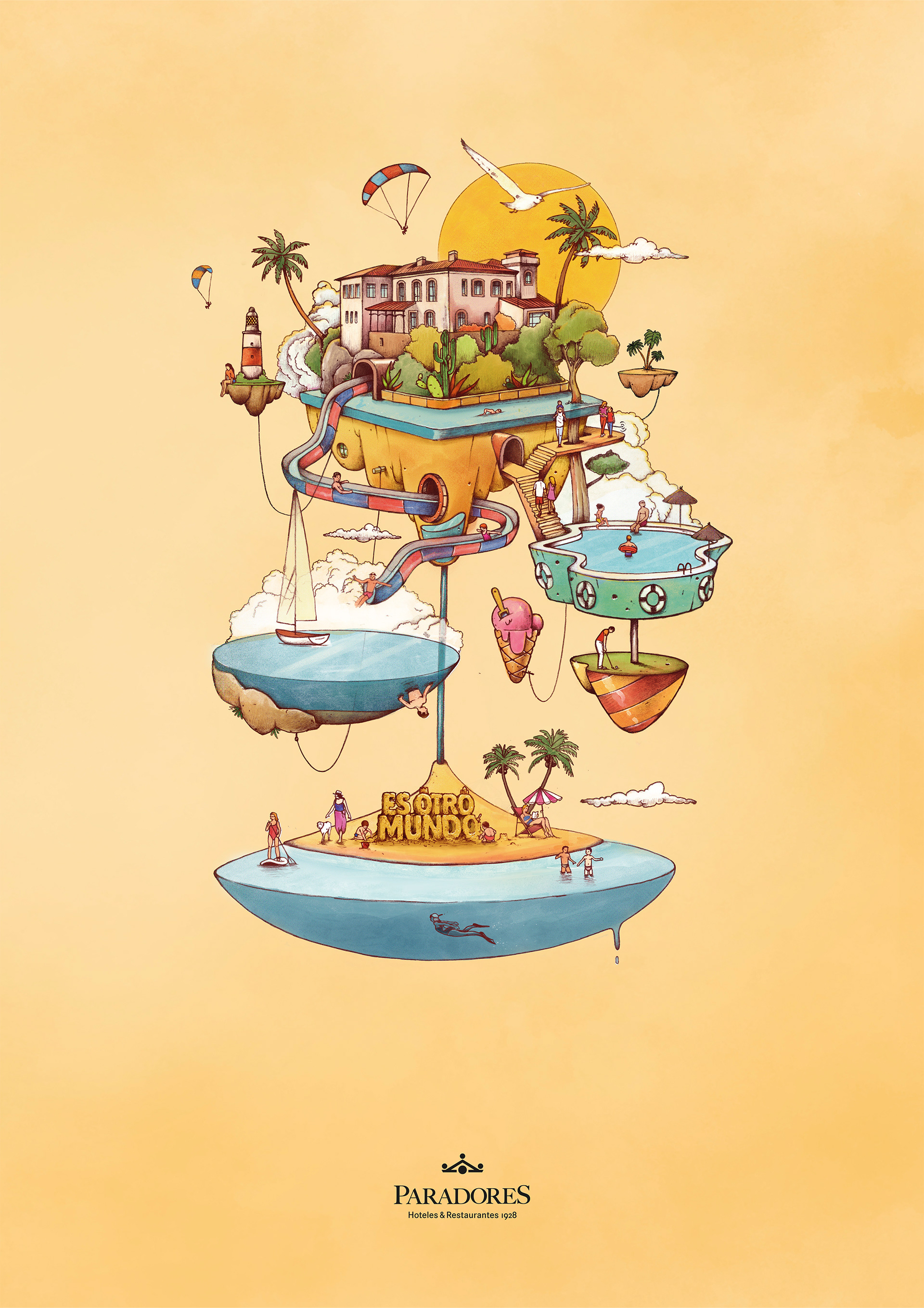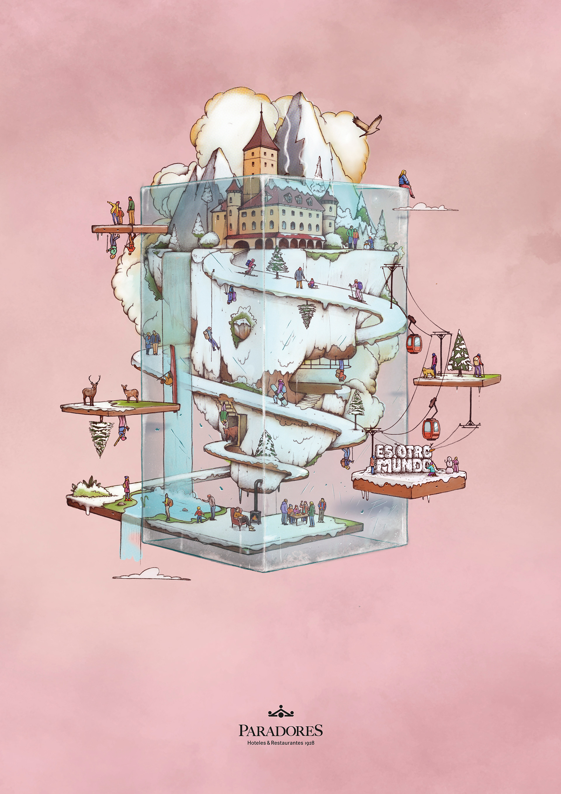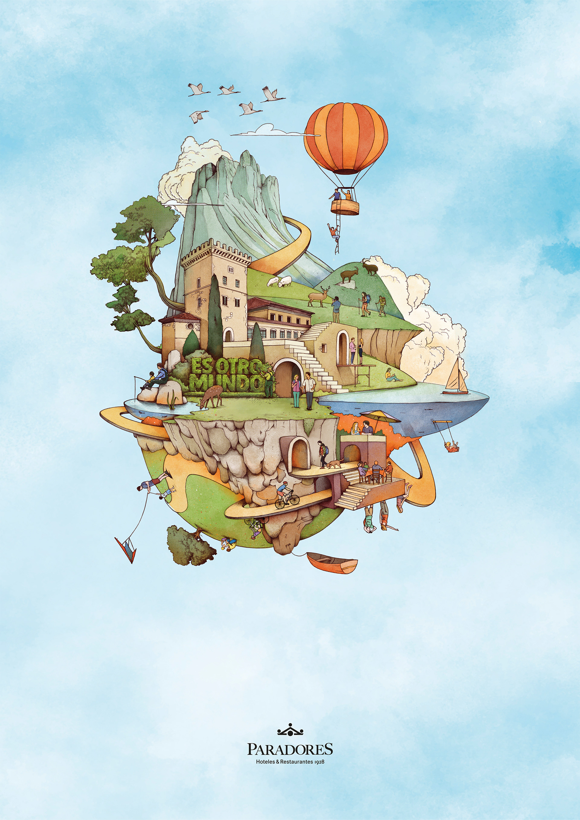 I had the opportunity to illustrate Paradores’ 2025 campaign in collaboration with the agency Darwin & Verne. The project focused on reinterpreting Paradores’ landscapes and spaces through imaginary environments, combining real elements with more fantastical ones to convey a different way of traveling and discovering the territory. A highly stimulating project that brings together creativity, identity, and tourism.